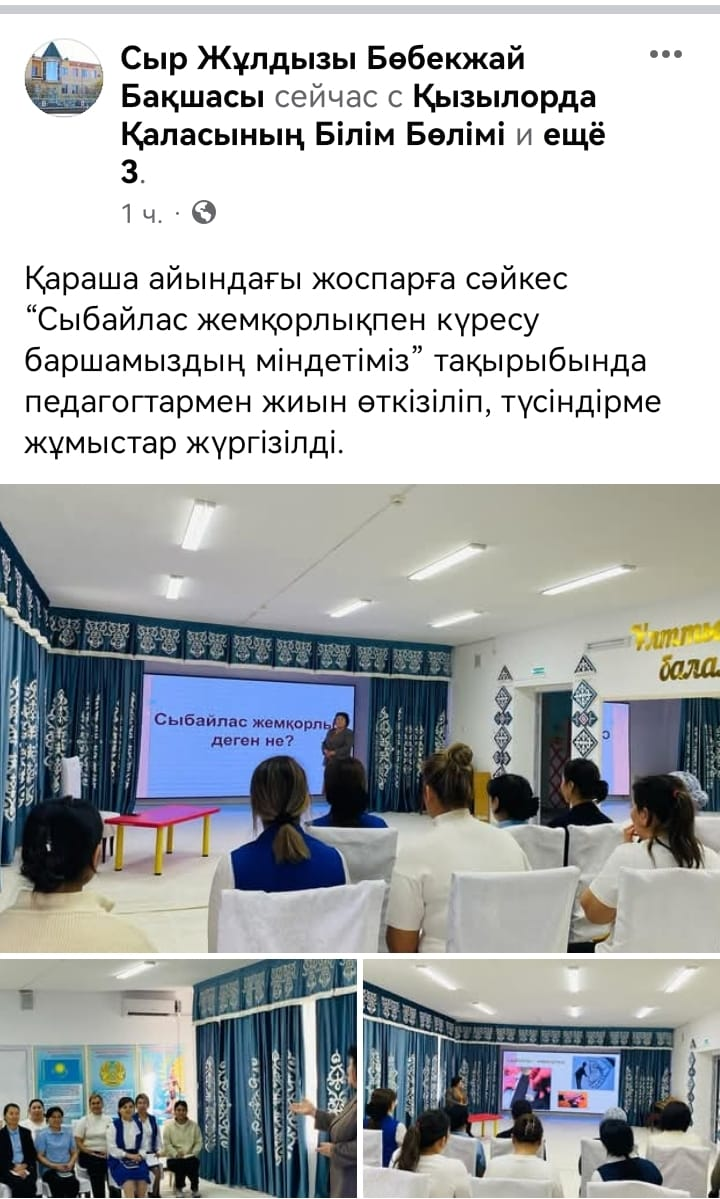 Бөбекжай бақшада әлеуметтік желіге сыбайлас жемқорлықтың алдын-алу бойынша арнайы жүргізілген жұмыстар көрсетілді.